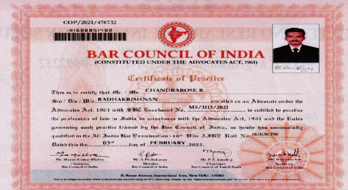 Bar Council of India (BCI) Number: Roll.Ms.3113/2021